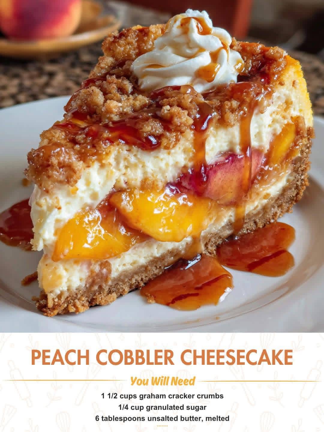 The Peach Cobbler Cheesecake is a true celebration of comfort and indulgence — a dessert that tells a story of tradition, love, and creativity. Each bite carries the warmth of baked peaches, the silkiness of cheesecake, and the buttery crunch of cobbler topping. Whether enjoyed at Sunday dinner or wrapped as a thoughtful gift, this dessert is destined to become a new family favorite.