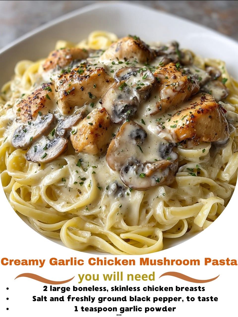 Creamy Garlic Chicken Mushroom Pasta is truly comfort in a bowl — creamy, flavorful, and deeply satisfying. It’s a reminder that great food doesn’t have to be complicated — just made with love, butter, and a touch of garlic magic.