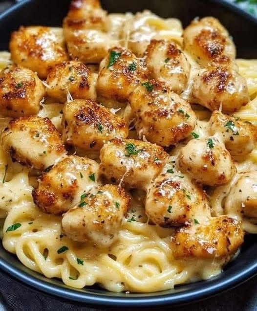 This luxurious Italian-American dish brings tender seared chicken, garlic-infused cream sauce, and perfectly cooked fettuccine together in a harmony of richness and flavor.