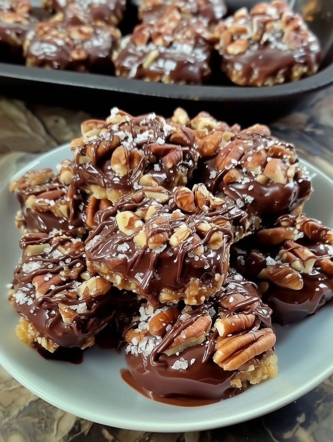 Some flavor combinations feel like destiny—chocolate, caramel, and pecans are one of those timeless trios that create pure magic in every bite. Imagine silky melted chocolate, buttery golden caramel, and the earthy crunch of toasted pecans working together in perfect harmony. This treat has been loved for generations, appearing in holiday tables, dessert trays, family gatherings, and sweet gift boxes.