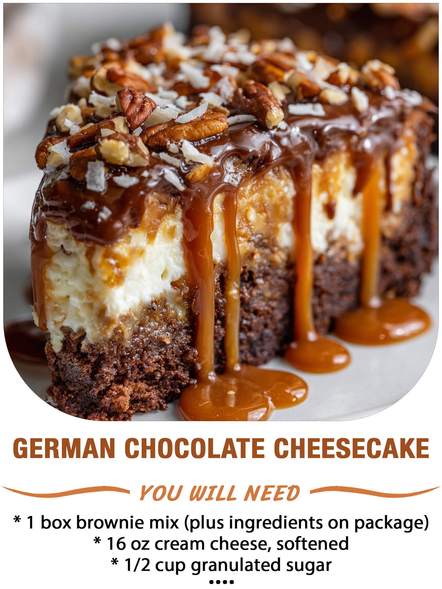 German Chocolate Cheesecake is the ultimate fusion dessert: the silky richness of classic cheesecake meets the caramel-sweet coconut-pecan filling of German chocolate cake. Every bite blends chocolate creaminess, buttery crunch, and toasted nutty sweetness. This dessert is strikingly beautiful, incredibly indulgent, and perfect for celebrations, holidays, or when you want a show-stopping treat that earns applause.