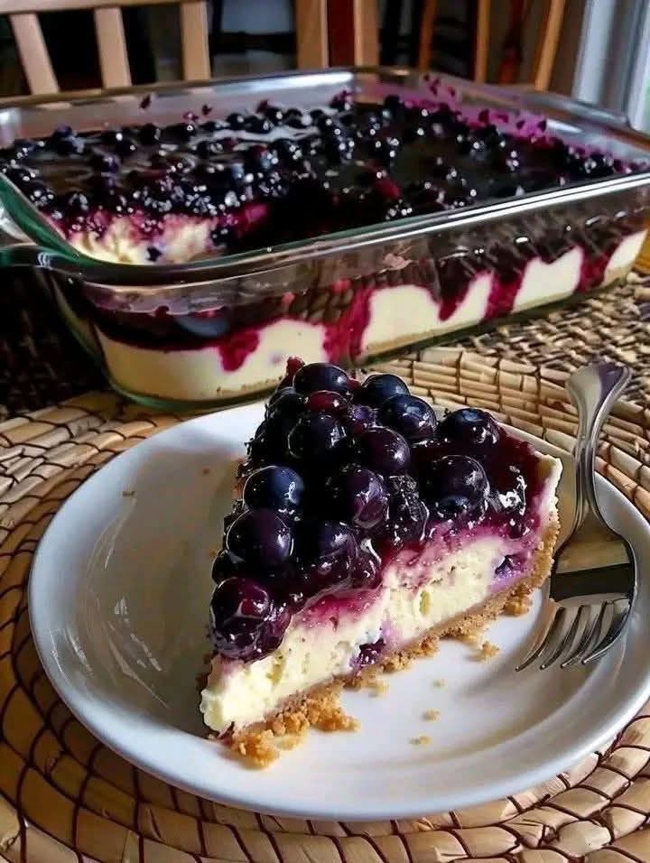 - Spread cooled blueberry topping over chilled cheesecake.