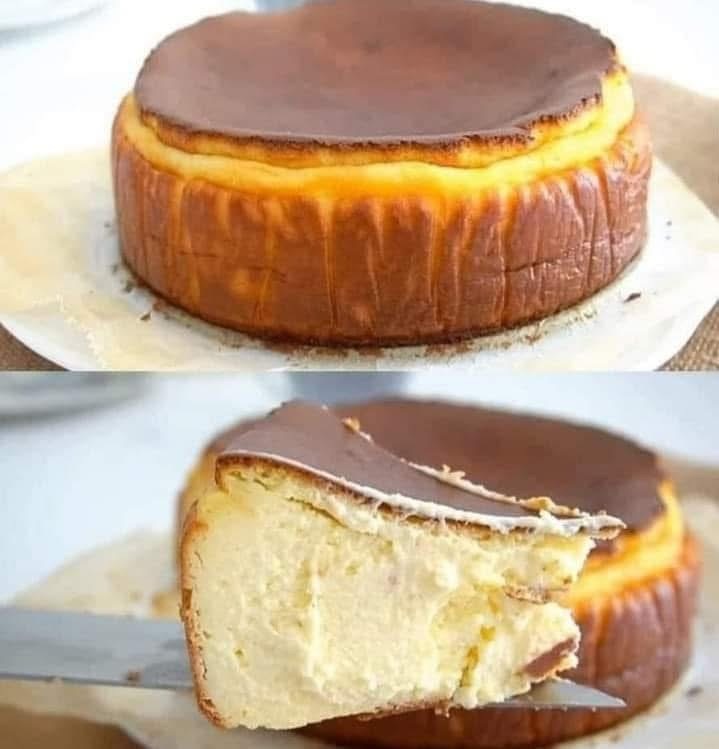 This famous cheesecake bakes at high heat to create a deep golden “burnt” top while staying rich and custardy inside. No crust needed.
