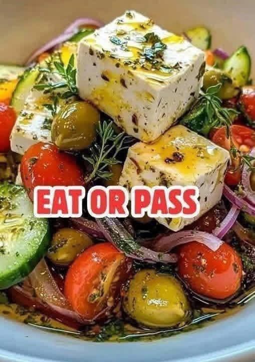 - Gently place the feta cubes on top (do not mix aggressively).