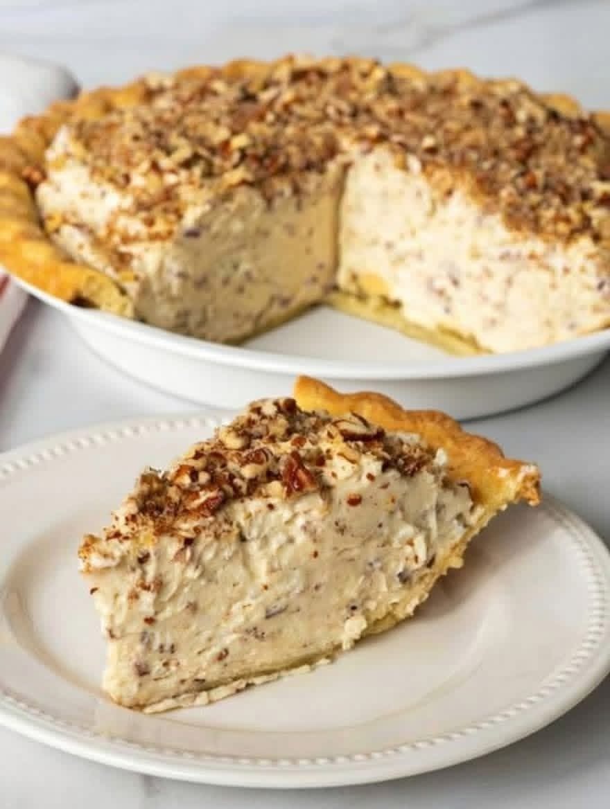 • The Crust: 1 ½ cups finely crushed Pecans mixed with 3 tbsp melted butter and a pinch of cinnamon.