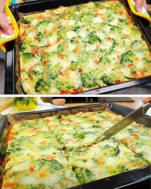 4. The Tray: Line a large baking tray with parchment paper. Pour the vegetable and egg mixture onto the tray, spreading it out evenly with a spatula.