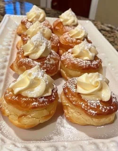 5. The Fill: Once cooled, slice the tops and pipe in your whipped cream “treasure.”