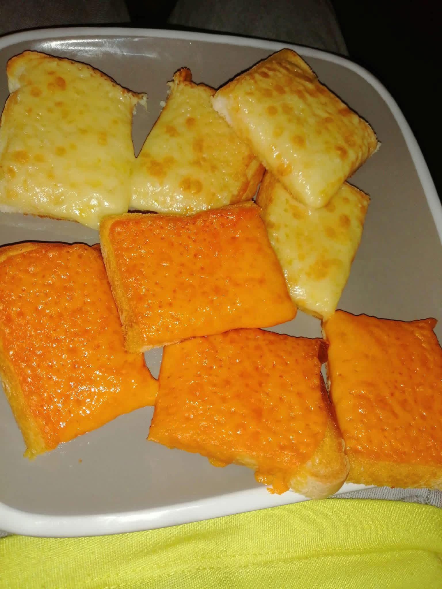 3. The Assembly: Top half of the slices with thick golden cheddar and the other half with white cheese, exactly like the professional setup in your picture!