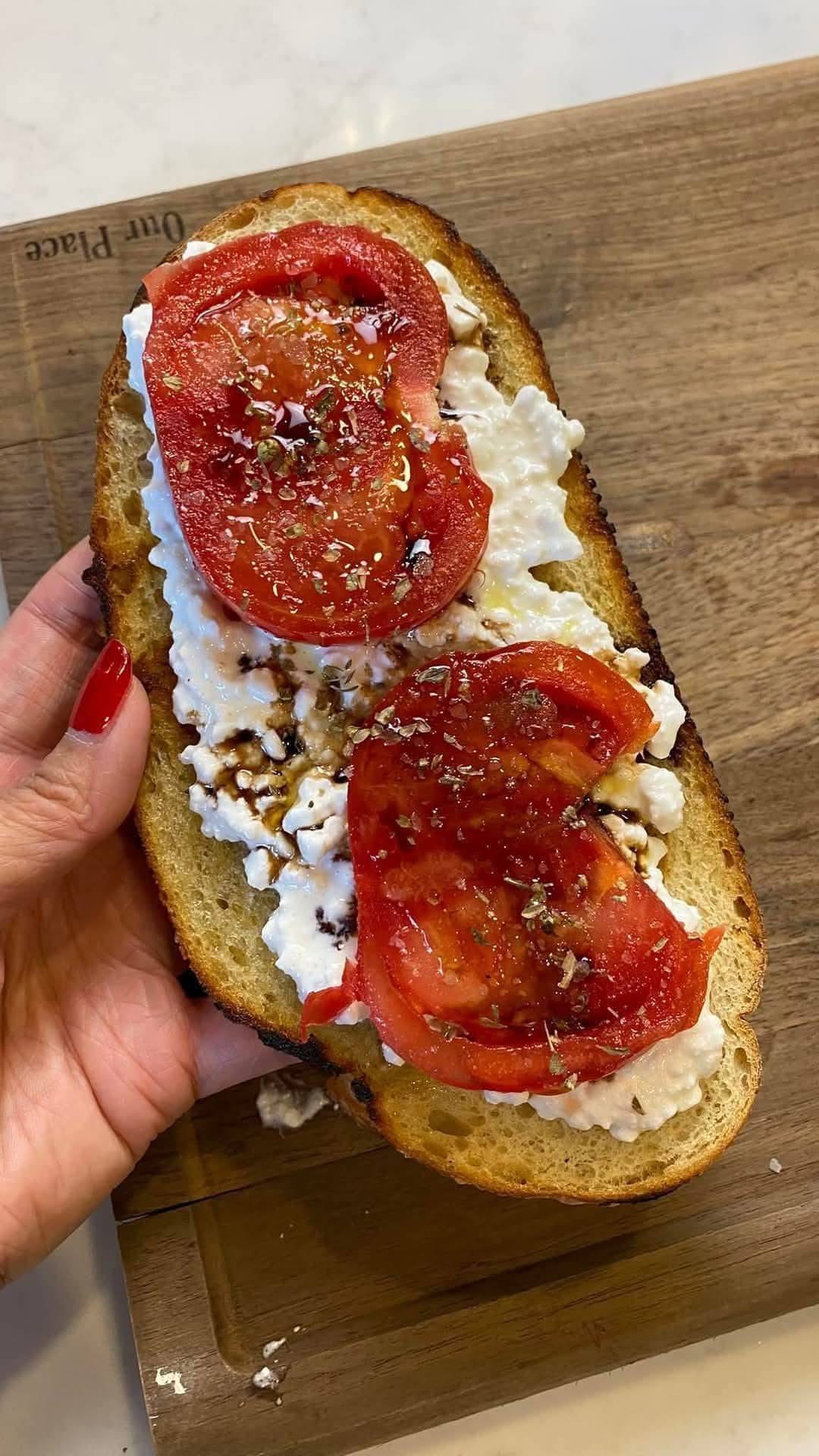 2. The Assembly: Spread the cottage cheese until the bread is completely “smothered” in a velvety layer.