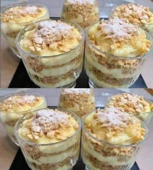 5. Repeat: Repeat the layers until the glass is full, finishing with a sprinkle of crushed biscuits on top.