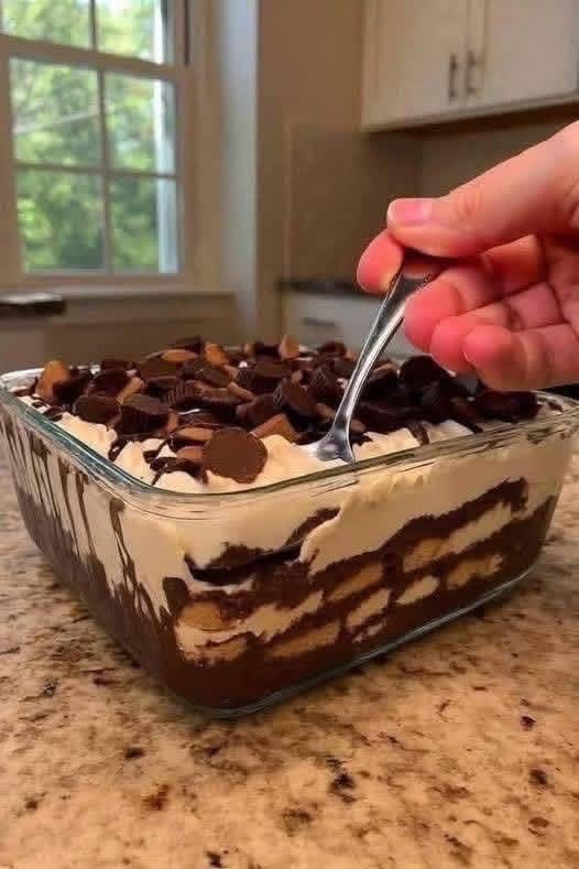 • Step 3: Layer the mixtures in a glass dish. Start with a “chocolate” layer, then a peanut butter layer, and top with more “nice cream.”